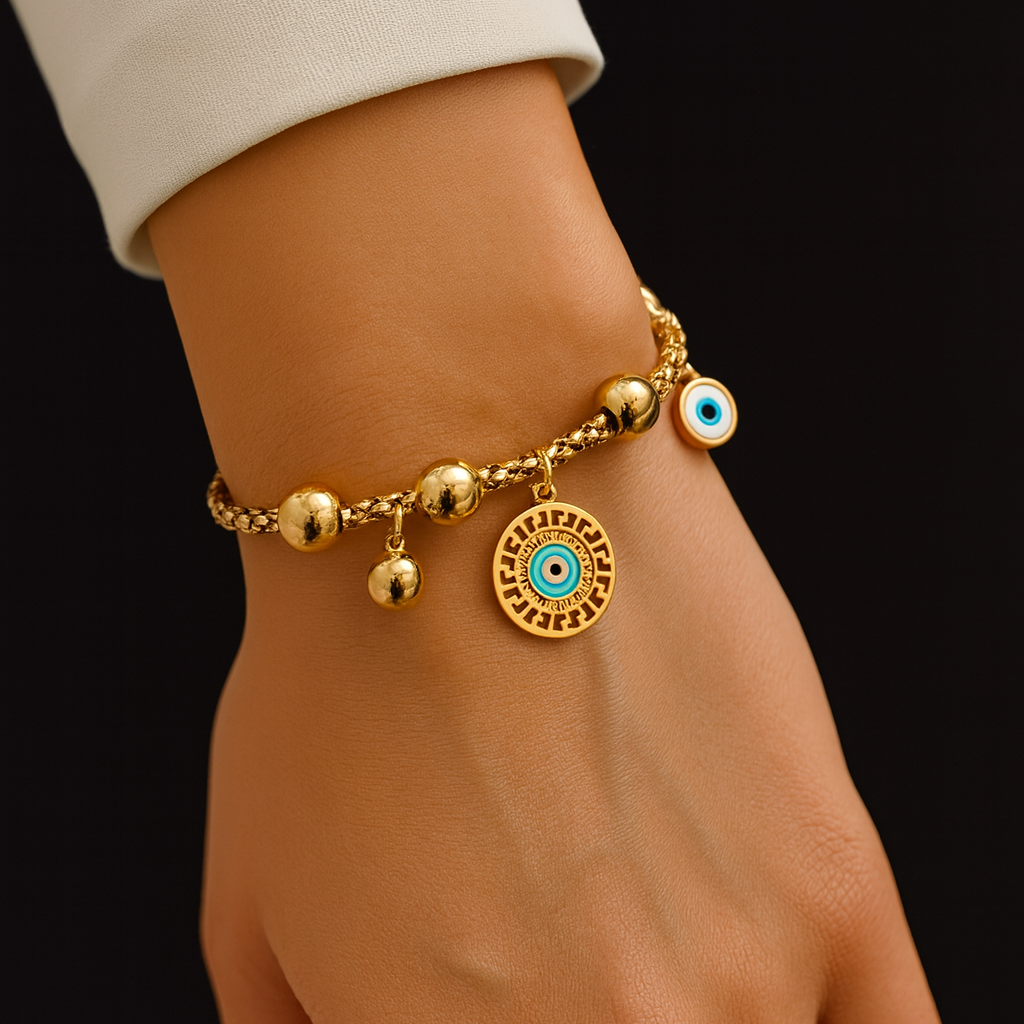 NAZAR BONCUĞU DETAYLI ÇELİK BURGU BİLEKLİK