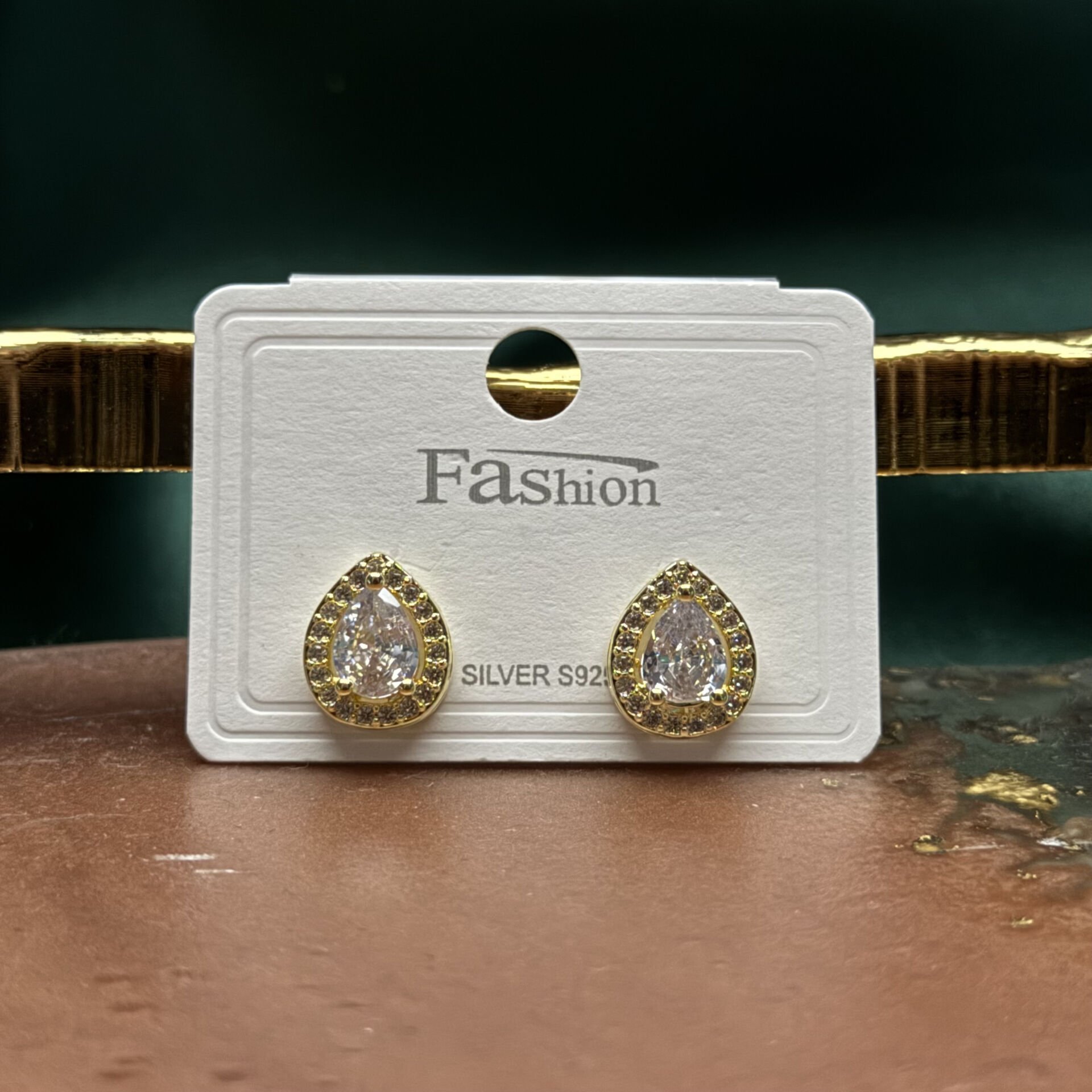 Zarif damla formu ve merkezde yer alan büyük kesim zirkon taşıyla dikkat çeken bu gold küpe, klasik şıklığı modern bir ışıltıyla buluşturur. Ortadaki damla kesim taş, çevresini saran ince zirkon detaylarıyla birlikte ışığı yoğun şekilde yansıtarak göz alıcı bir parlaklık oluşturur.