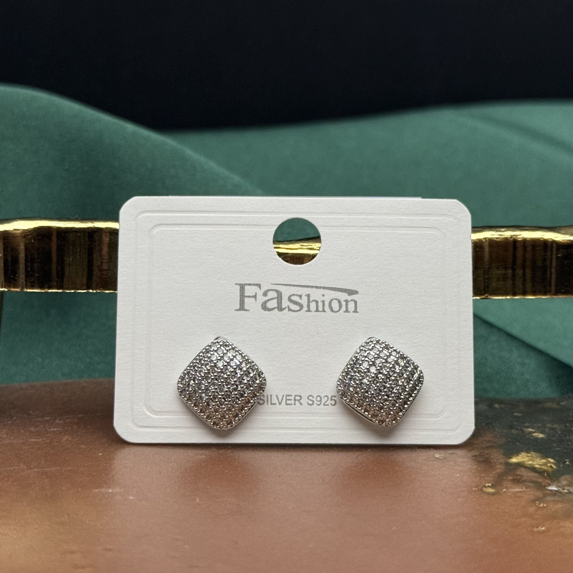 Modern kare formu ve yüzeyini tamamen kaplayan mikro taş detaylarıyla tasarlanan silver küpe modeli, güçlü ama dengeli bir ışıltı sunar. Hafif bombeli yapısı sayesinde ışığı homojen şekilde yansıtarak şık ve net bir görünüm oluşturur.