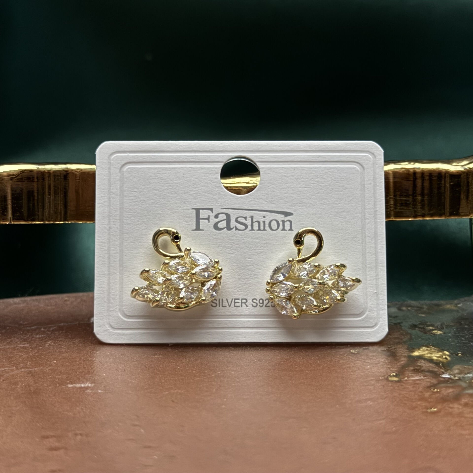 Zarif kuğu formu ve yoğun zirkon taş dizilimiyle tasarlanan bu gold küpe, sofistike ve dikkat çekici bir stil sunar. Kuğu siluetini oluşturan marquise kesim taşlar ışığı farklı açılardan yansıtarak güçlü bir ışıltı sağlar. Üst kısımdaki kıvrımlı gold detay ise tasarıma zarif bir hareket kazandırır.