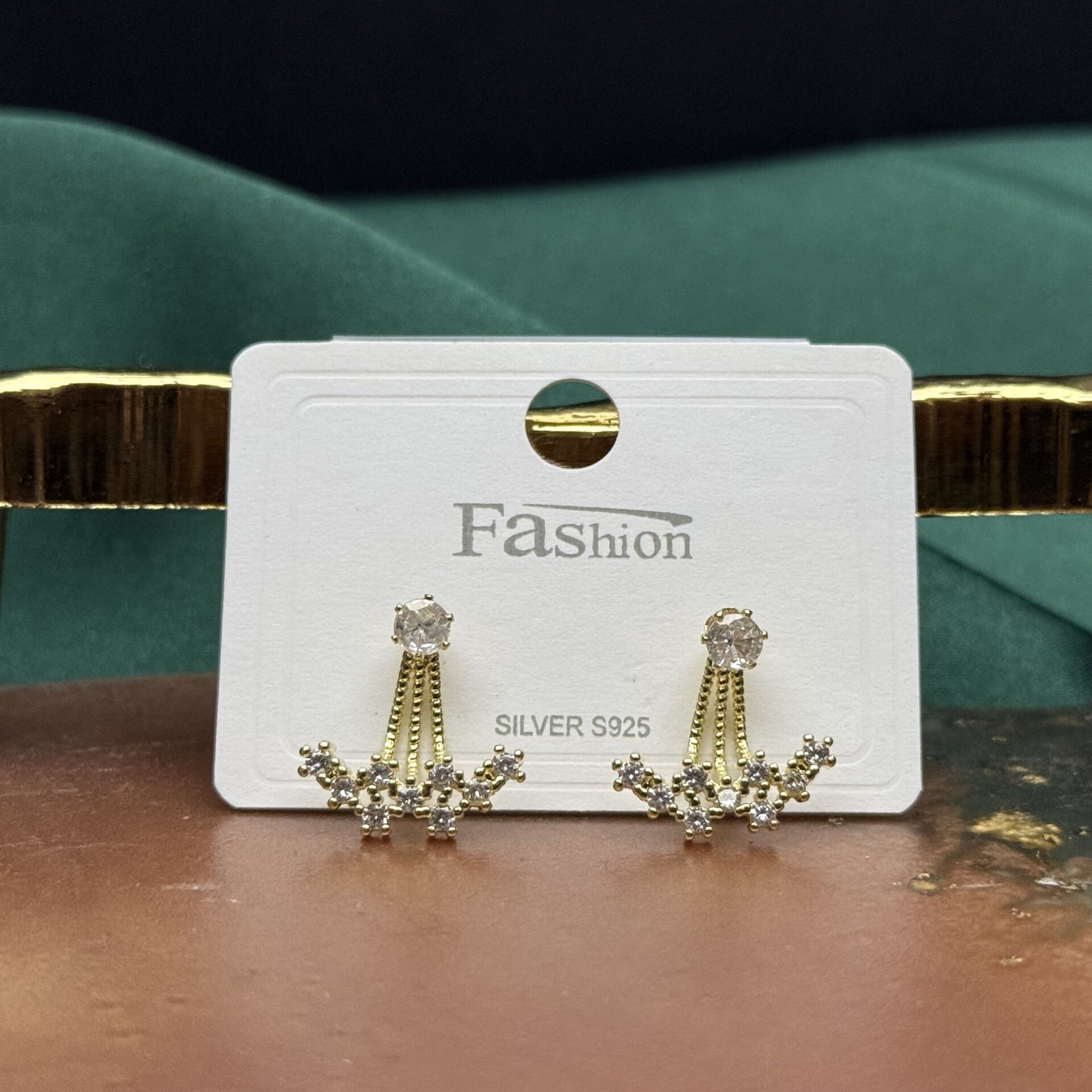 Işıltılı taş detayları ve zarif zincir formuyla tasarlanan gold küpe modeli, modern ve feminen bir stil sunar. Üst kısmındaki parlak taş detayı kulağa minimal bir ışıltı katarken, aşağı doğru uzanan ince zincir formu ve taşlı alt bölümü hareketli ve dikkat çekici bir görünüm oluşturur.