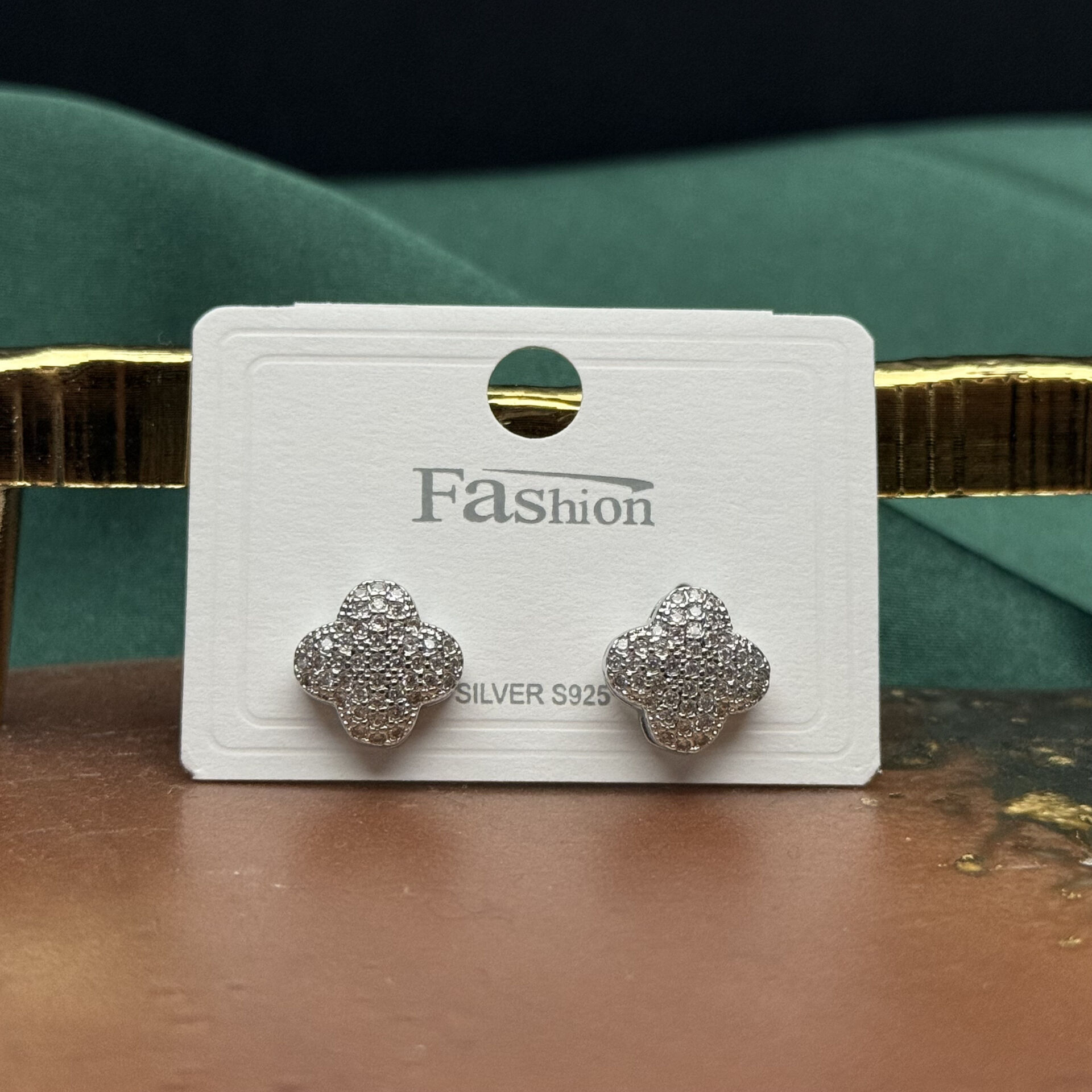 Zarif yonca formu ve yoğun taş kaplama detayıyla tasarlanan bu silver küpe modeli, modern ve sade şıklığı bir araya getirir. Tam yüzey taş işçiliği sayesinde ışığı dengeli ve sofistike bir şekilde yansıtarak abartısız ama dikkat çekici bir görünüm sunar.