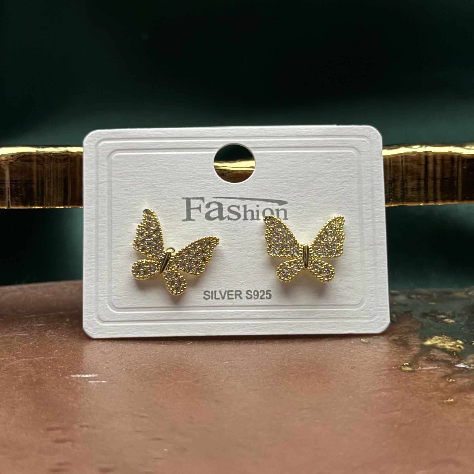 Zarif kelebek formu ve yoğun zirkon taş kaplamasıyla öne çıkan bu gold küpe, ışıltıyı romantik bir tasarımla buluşturur. Kelebeğin kanatlarını tamamen saran ince zirkon taşlar ışığı her açıdan yansıtarak dikkat çekici bir parlaklık oluşturur. Ortadaki gold detay ise tasarıma derinlik ve bütünlük kazandırır.