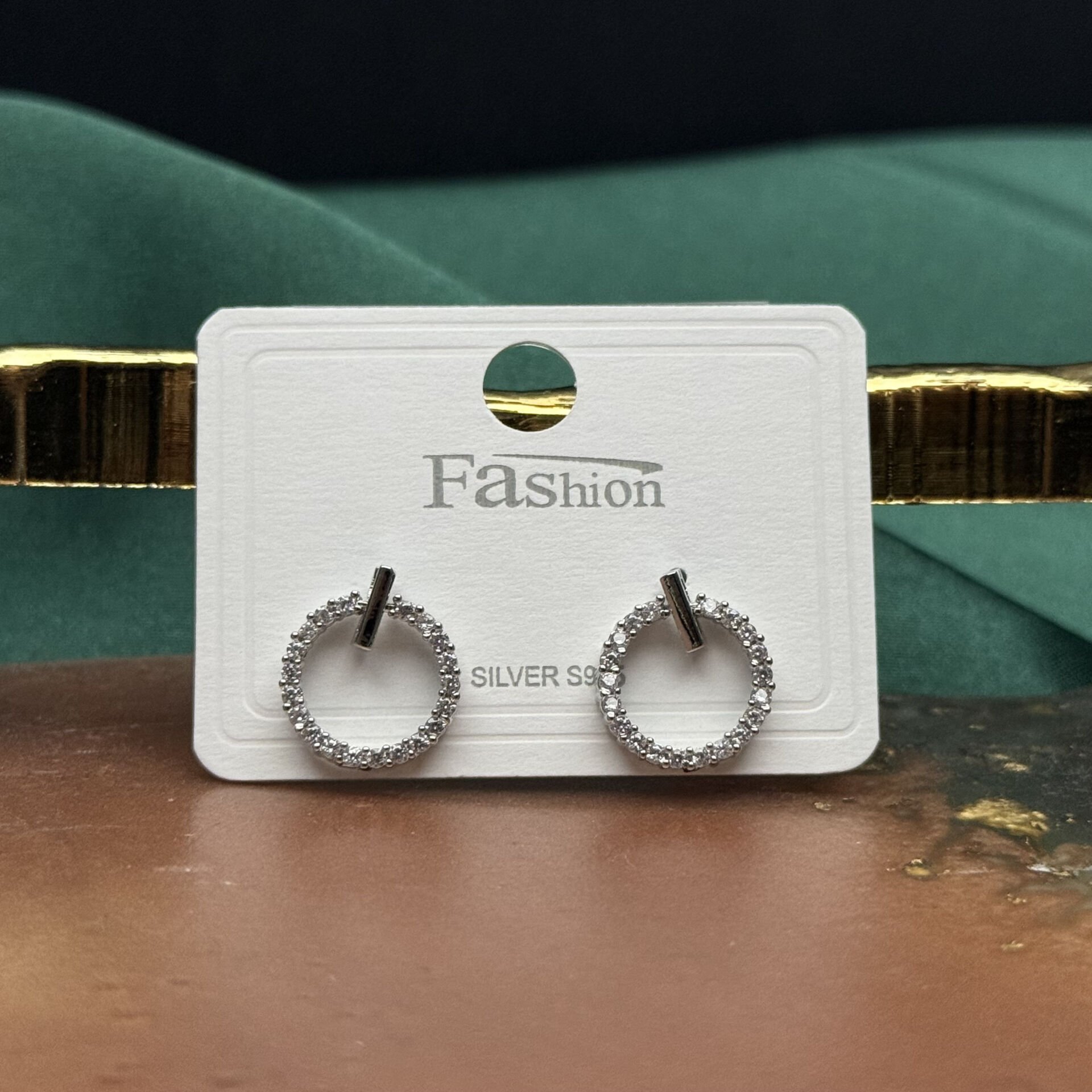 Zarif halka formu ve çevresini saran mikro taş detaylarıyla tasarlanan bu silver küpe modeli, minimal ama etkili bir ışıltı sunar.
