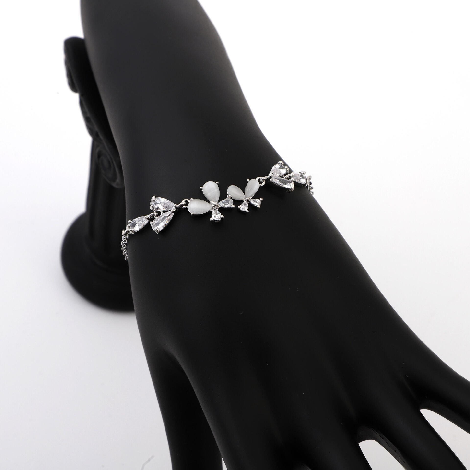 ZİRKON TAŞLI KELEBEK VE KALP DETAYLI BİLEKLİK