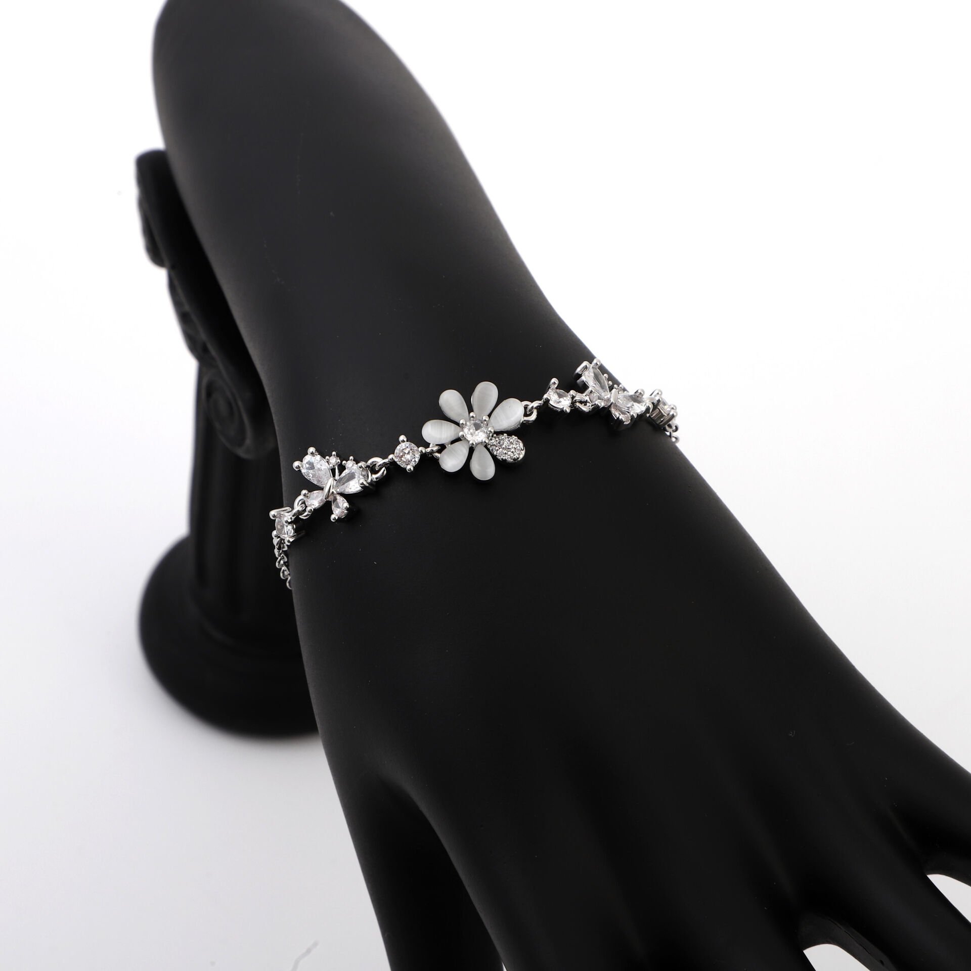 ZİRKON TAŞLI KELEBEK VE PAPATYA DETAYLI BİLEKLİK