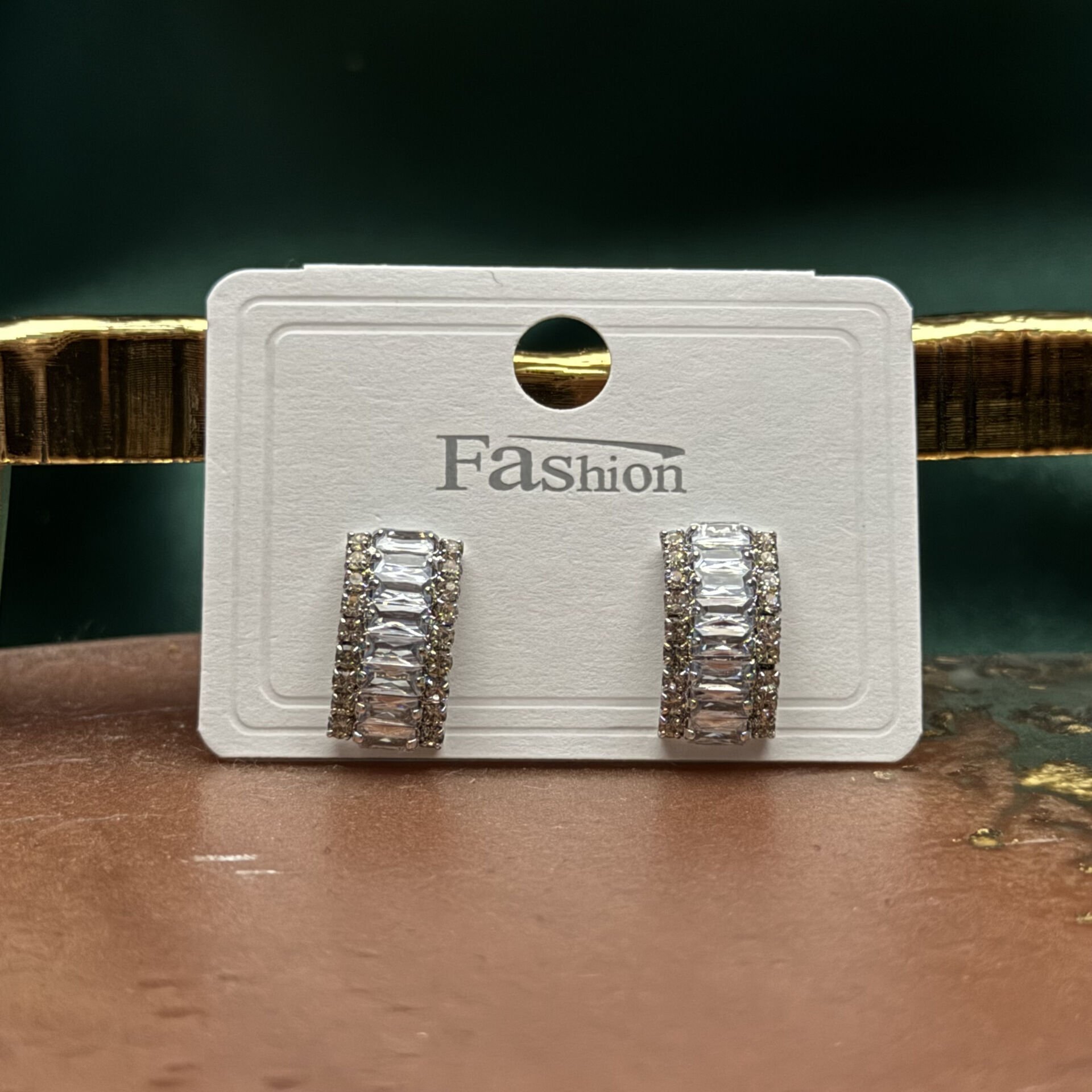 Silver tonun sade ve zamansız etkisi, tasarımın modern yapısıyla birleşerek hem günlük kullanımda hem de özel davetlerde rahatlıkla tercih edilebilecek bir stil sunar. Kulakta dengeli ve şık bir duruş sergileyen bu model, abartısız ama dikkat çekici bir ışıltı isteyenler için idealdir.